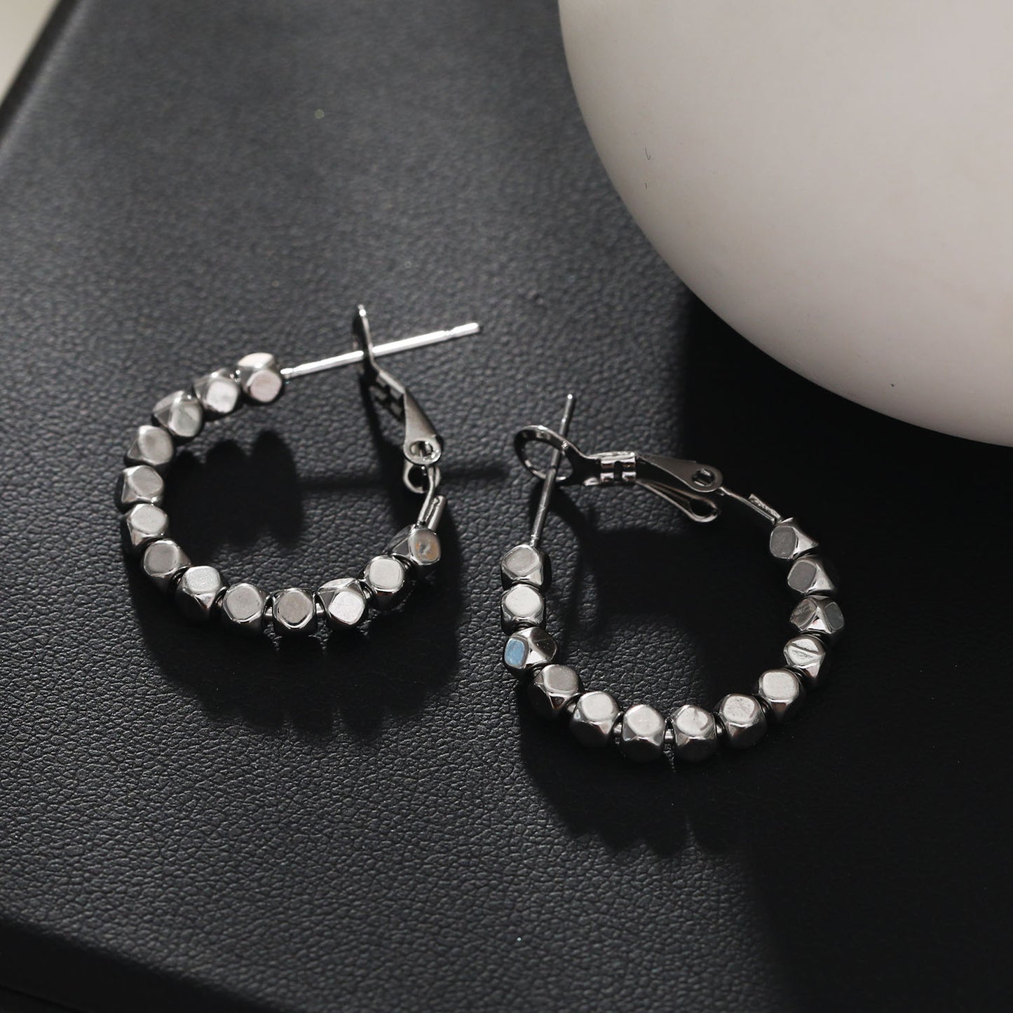 ANDALI Square Beads Hoop Silver Earrings
