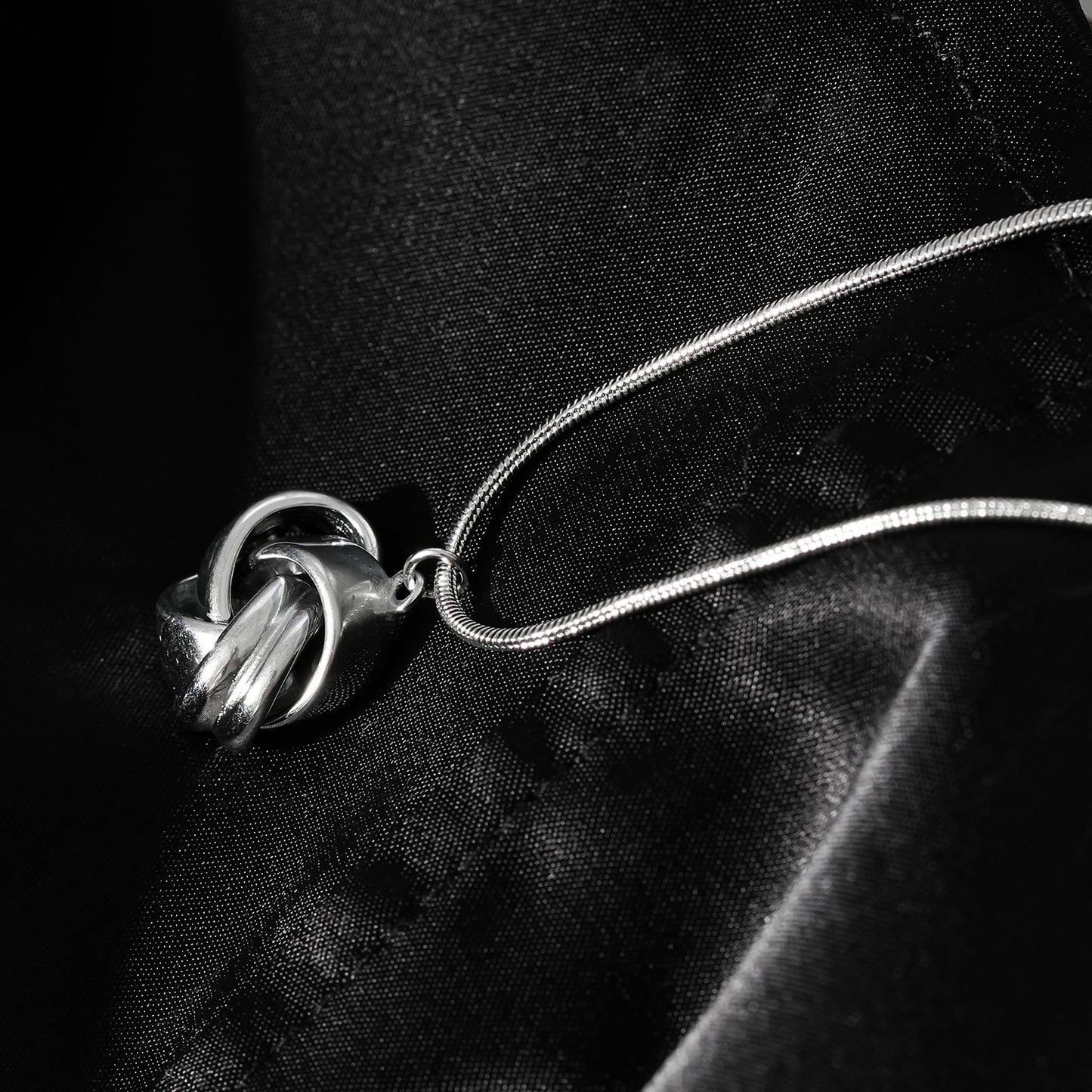 The unique snakeskin chain pattern adds a sophisticated edge to this necklace, while the intricately designed love-knot pendant symbolizes eternal love and unity.
