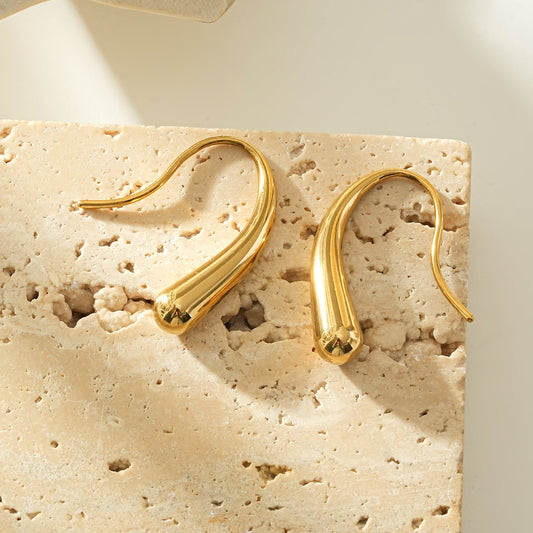 CLARA Gold: Swirl Tail Hoop Earrings – Minimalist Fluid Curve Design