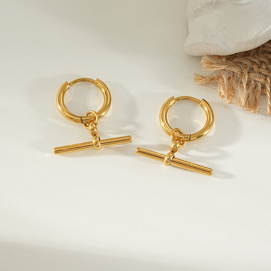 JUNIPER Gold: Hoop Earrings with Dangling T-Bar Charm