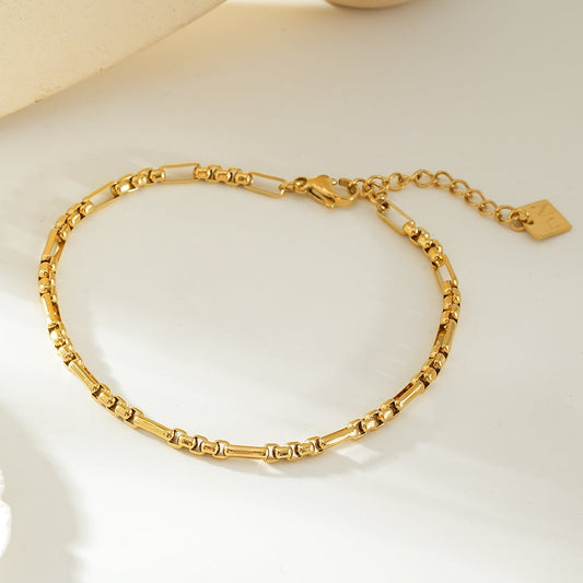 CASTILIA Gold Bracelet: Double Stacked Paper Clip Chain & Beaded Chain - Dazzle in Duality