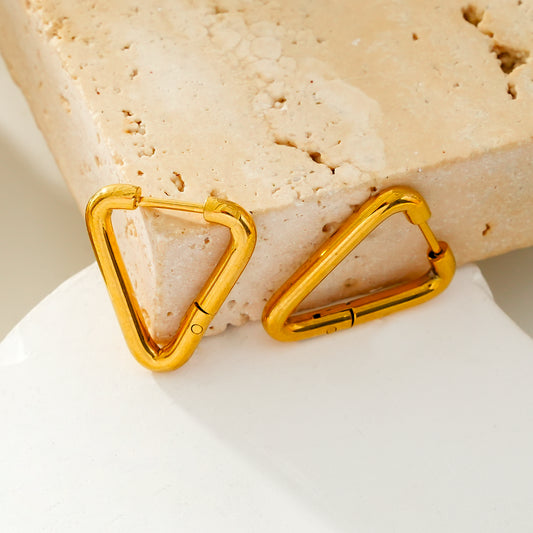 TRILO Gold: Modern Triangle Hoop Earrings - A Bold Twist on Classic Elegance