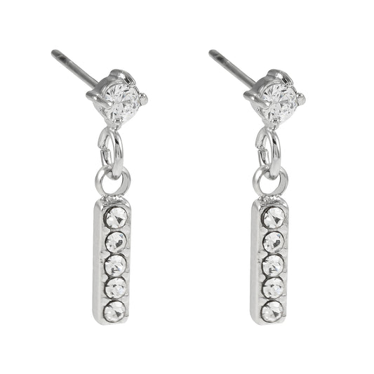 CAMDEN Silver (White Gold): Zirconia Embedded Bar & Mini Solitaire Combo Studs