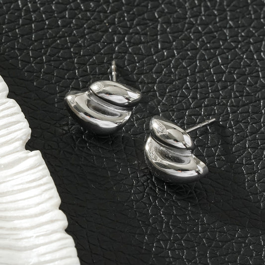 BRIGITTA Silver (White Gold): Contemporary Abstract Shaped Stud Earrings