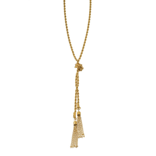 ORSOLIA Gold: Vintage Rope Chain Necklace with Freshwater Pearl & Solitaire Zirconia Charm