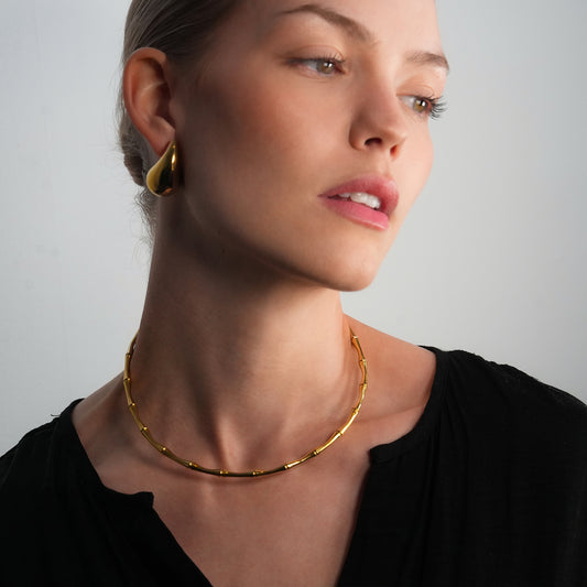 BENONI Gold: Bamboo Textured Choker Collar Necklace.