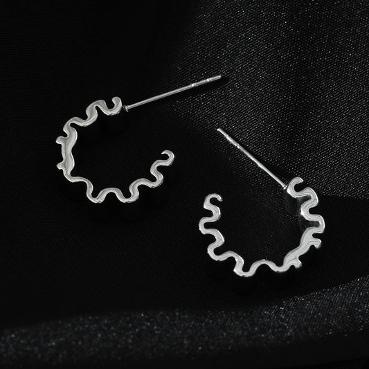 Style ALMORA: Retro-Inspired Wriggly Shaped Hoop Earrings in White Gold (Silver Toned)