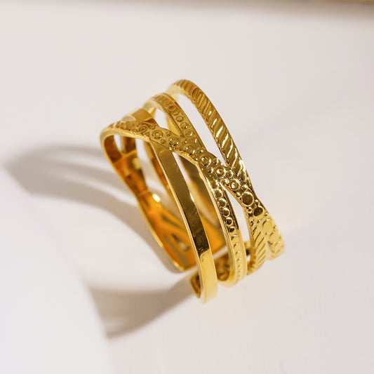 ALOIS: Cross Over Multi Stacked Textured Gold RingVendor:HACKNEY NINERegular price $25.00Regular priceUnit price per-