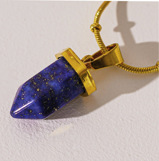 VIOLA: Lapis Lazuli Stone Pendant Anchored on a Beaded Snake Skin Textured Chain NecklaceVendor:HACKNEY NINERegular price $30.00Regular priceUnit price per-
