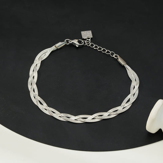 ELLA White Gold (Silver Toned): Intertwined Herringbone Snake Skin Textured Bracelet