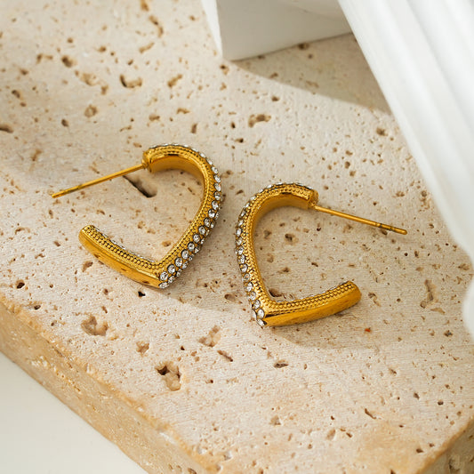 Style ANJAR Gold: Heart Shaped Hoops embedded with Zirconia Gemstones