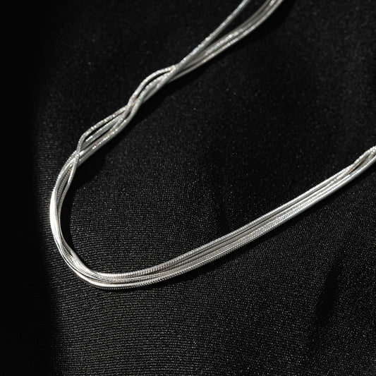 AVEZZANO White Gold (Silver Toned): Snake-Skin Textured Multi-Strand Chain Necklace - Exquisite Elegance