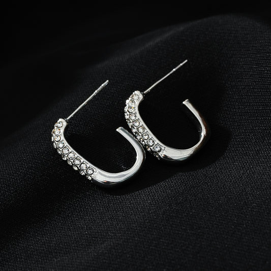 CARBIS: Retro Style Crossover Zirconia Embedded Earrings in White Gold (Silver Toned)