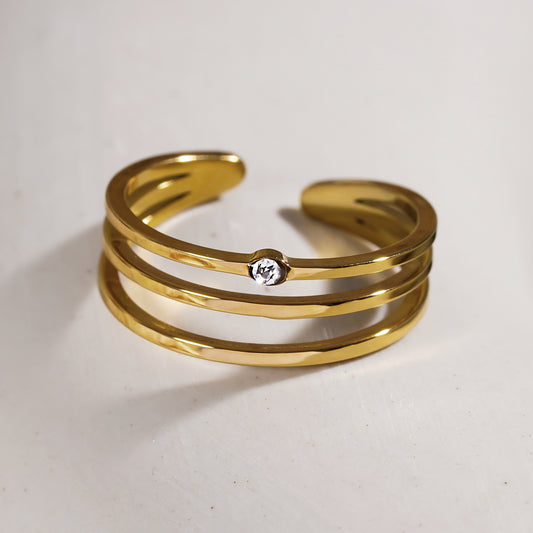 Style LIEZEL: Triple Band Ring with a Solitaire Zirconia Gemstone