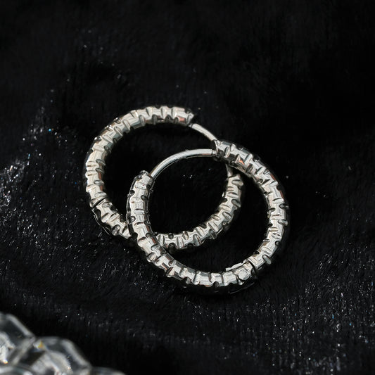 FIRLE Silver (White Gold): Partial Pavé Zirconia Oval Hoop Earrings
