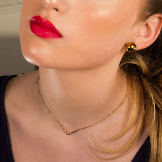 SANITA: Beaded Dainty Chain Anchoring 'V' Shaped Zirconia Embedded Pendant CharmFournisseur :HACKNEY NINEPrix habituel $30.00Prix habituelPrix unitaire par