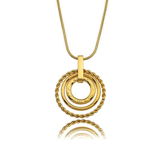 AMELIA Trio Textured Circle Pendants Gold Necklace