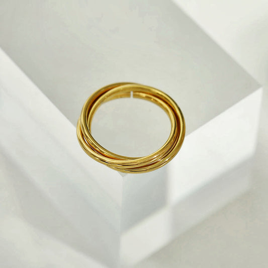 ESTELLA: Triple Banded Interconnected Stack Ring in Gold