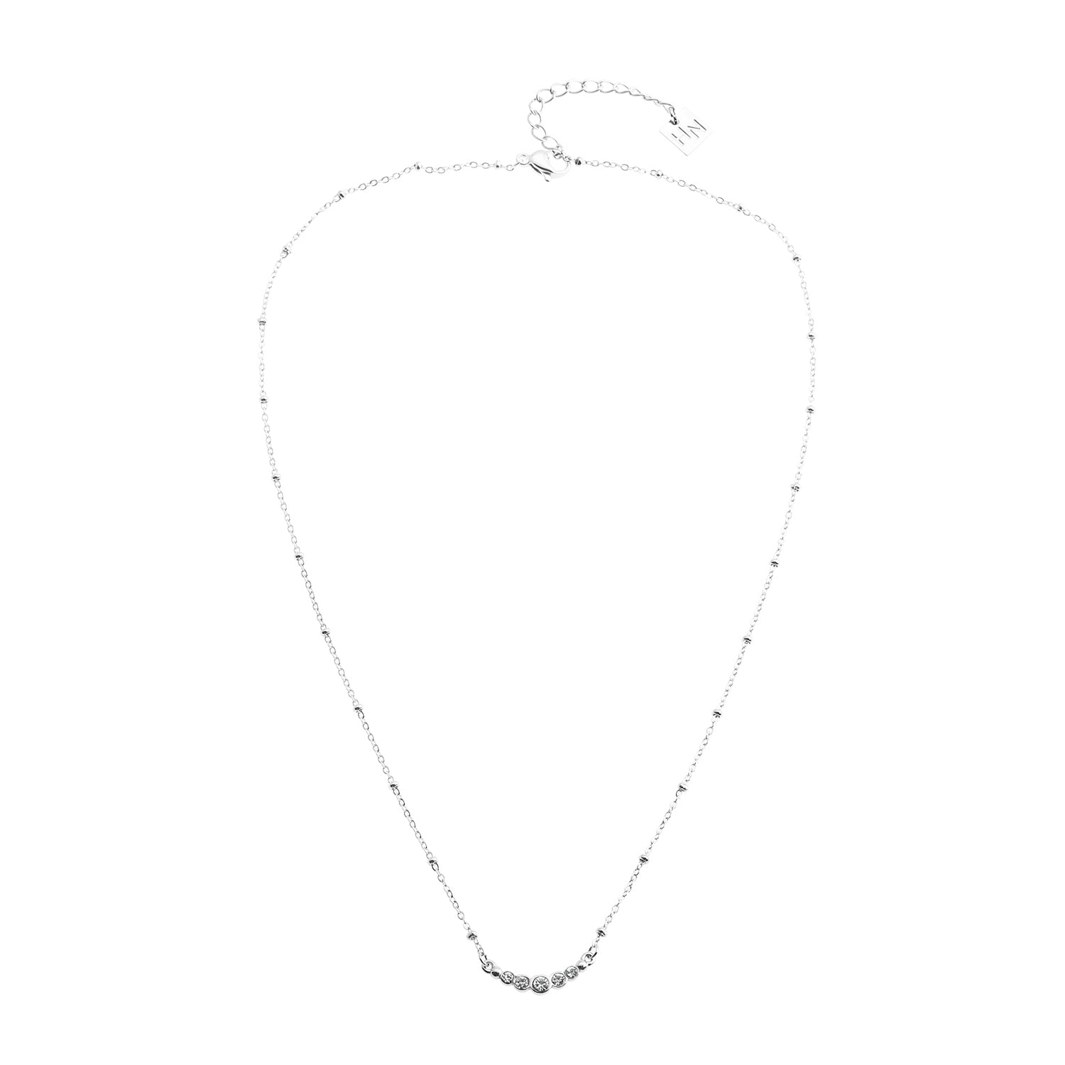 A group of dainty pavé-set zirconia gemstones glitter at the centre of this delicate beaded chain necklace, ideal for dress-up dress-down everyday all day wear.