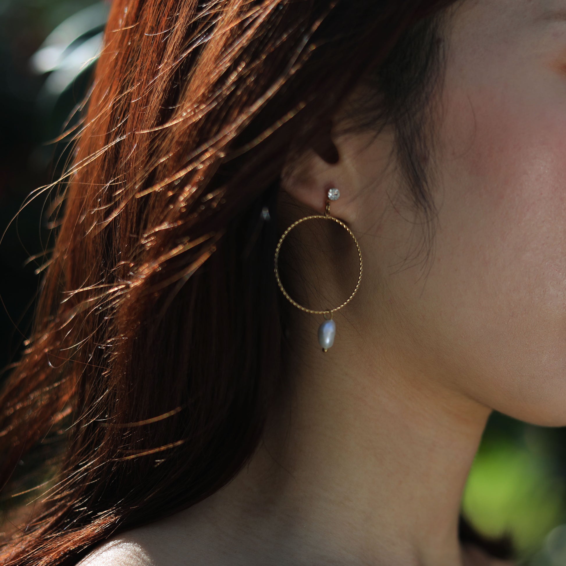 Slim & minimalist. Textured hoops anchoring fresh water pearls & zirconia gemstones. An equal measures of style & elegance that is sure to enhance any outfit.