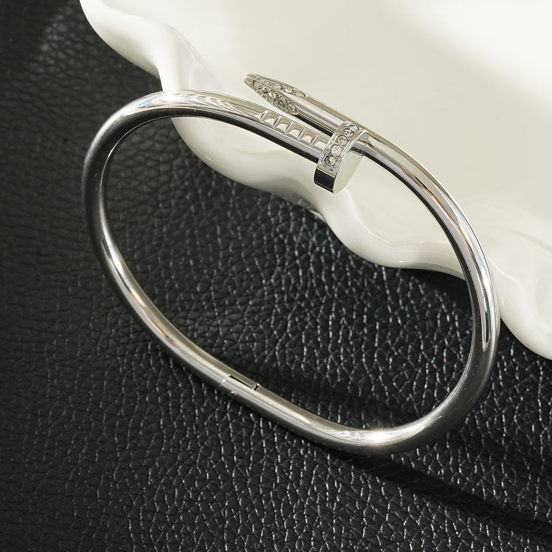 DAVIDKA Silver (White Gold): Zirconia Embedded Industrial-Chic Twisted Nail Bracelet