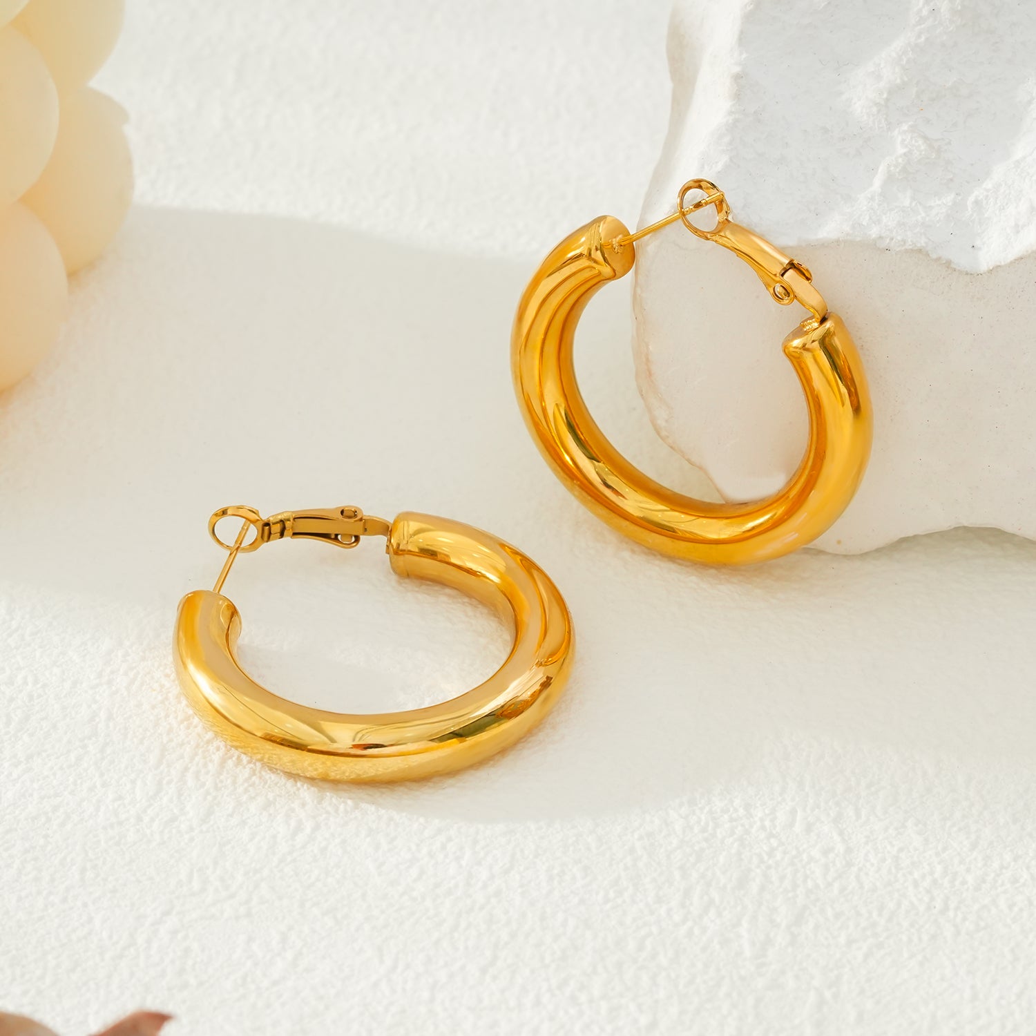 DERIVIER Gold: Semi-Wide Essential Hoop Earrings (3.5cm)