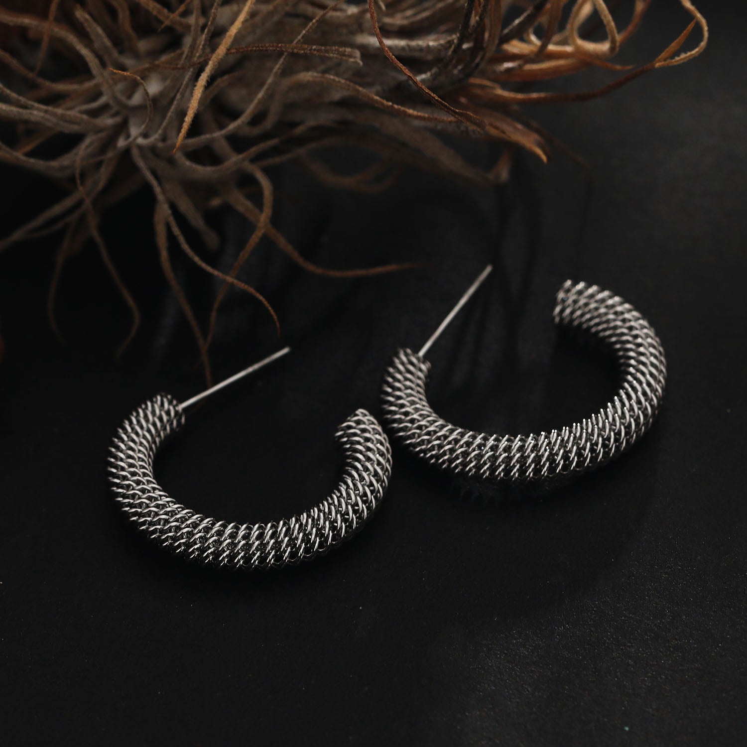 KUMASI Richly Textured Silver Hoop Earrings