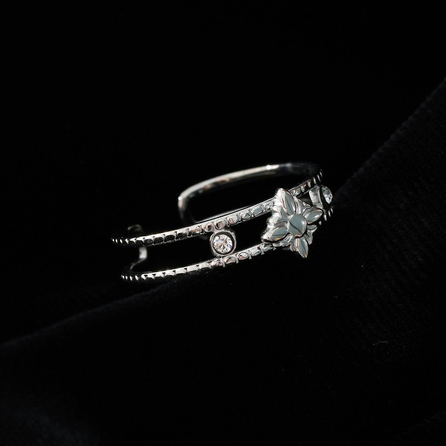 MICHELE White Gold (Silver Toned): Vintage Inspired Double Stacked Ring.