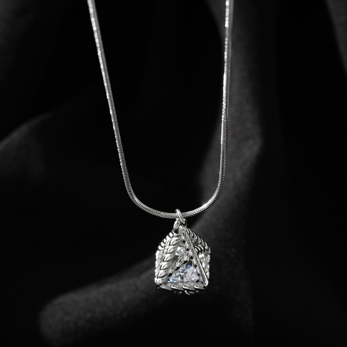Style KARJAT: Silver (White Gold) Chain Necklace with Geometric Caged Zirconia Pendant